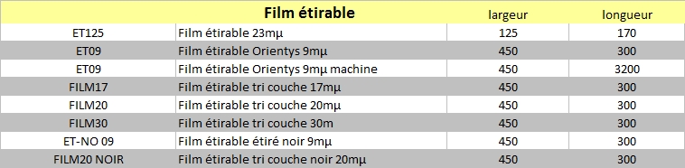 Dimensions disponibles